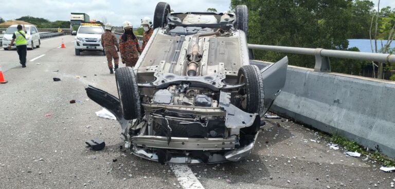 Hilang kawalan, terbabas langgar kenderaan lain sebelum terbalik
