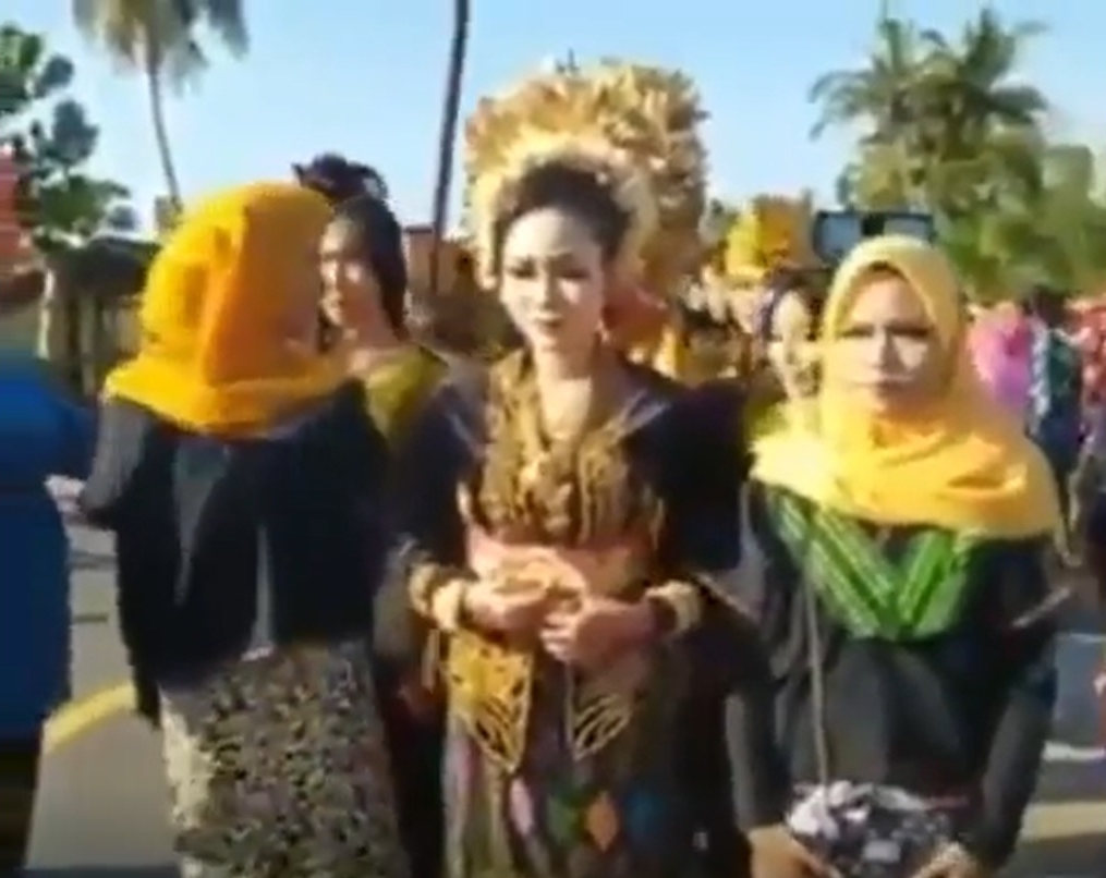 Berdasarkan rakaman video, kelihatan seorang pengantin perempuan berbaju hitam berdiri bersama sekumpulan pengiring pengantin memakai baju kebaya.