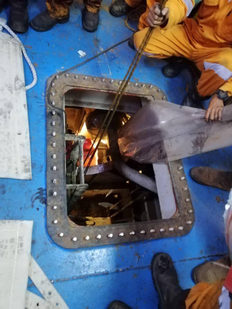 “Bagi mengeluarkan mangsa kedua pula, anggota bomba terpaksa memakai pakaian khas untuk memasuki ruang dalam kapal.