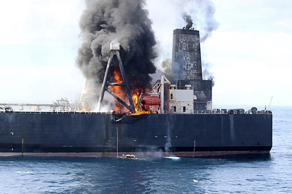 Kapal minyak itu mengeluarkan satu isyarat kecemasan pada jarak 60 kilometer dari bandar perairan Sangamankanda Point, timur Sri Lanka.