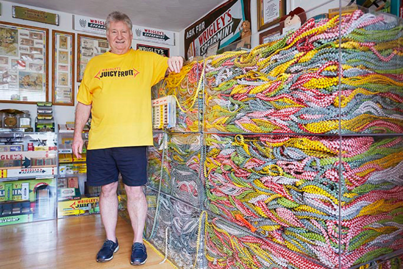 Duschl berkata, dia mengumpul kertas pembalut gula-gula getah dan menganyam rantai itu sejak 1965, satu trend dalam kalangan orang muda pada ketika itu.