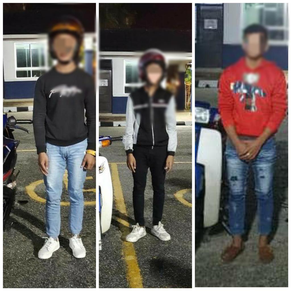 Suspek yang berusia 17, 19 dan 20 tahun ditahan oleh Bahagian Siasatan Dan Penguatkuasaan Trafik Ibu Pejabat Polis Daerah (IPD) pukul 3.30 hingga 4 pagi di Jalan Padang Kala dekat Melor dan di Bulatan Kampung Cempaka di sini.