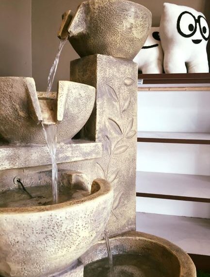 DEKORASI di dalam klinik gigi turut disuntik elemen spa seperti aliran air pancuran yang mendamaikan.