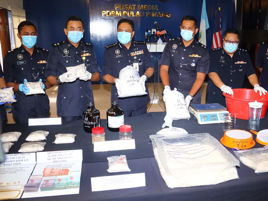“Dalam serbuan tersebut, kita turut menemui sejumlah dadah jenis heroin, pil esktasi dan syabu dengan nilai keseluruhan berjumlah RM177,210,” katanya pada sidang akhbar di Ibu Pejabat Polis Kontinjen (IPK) Pulau Pinang di sini hari ini.