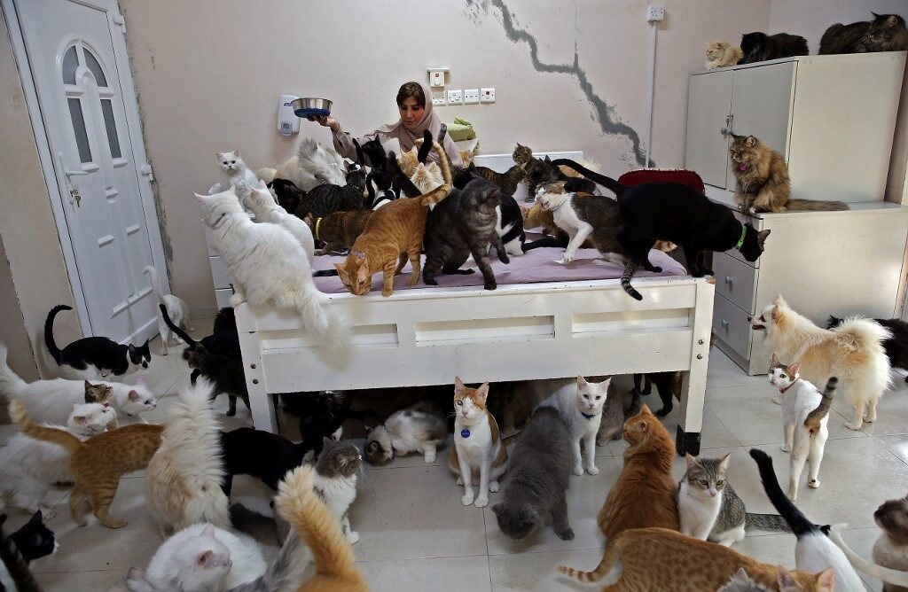 Maryam al-Balushi tidak mempedulikan aduan jiran-jiran sekeliling apabila mengumpulkan 480 ekor kucing dan 12 ekor anjing di rumahnya.