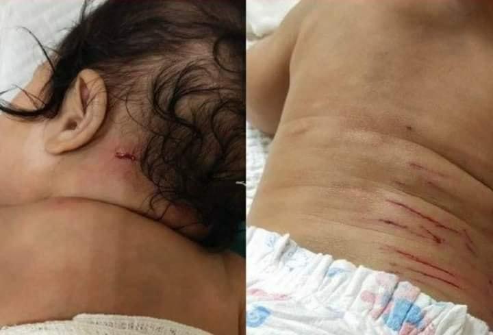 Dalam kejadian kira-kira pada pukul 11.30 pagi itu, mangsa, Aisyah Nur Zara Mohd. Azmi, 5 bulan, mengalami luka pada belakang badan dan leher kini dirawat di Hospital Sultan Ismail (HSI) di sini.