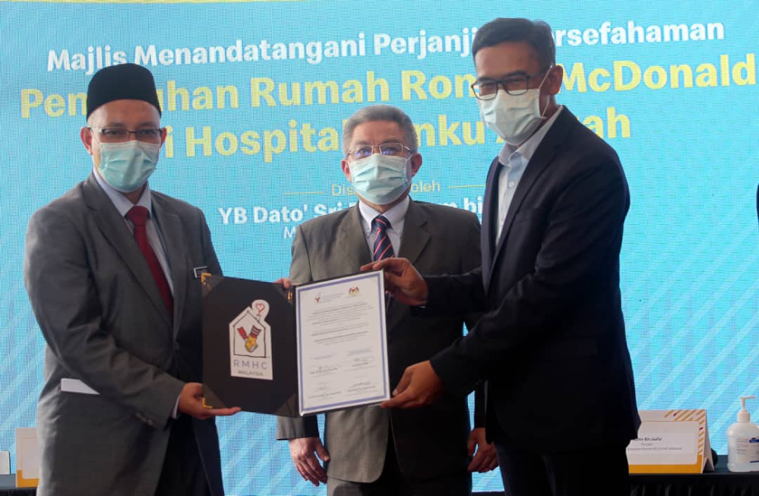 PUTRAJAYA – Persatuan Kebajikan Ronald McDonald Malaysia (RMHC Malaysia) dan Kementerian Kesihatan (KKM) bekerjasama bagi menubuhkan fasiliti itu di Hospital Tunku Azizah, Kuala Lumpur.