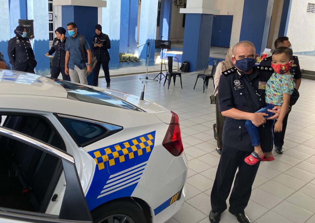 Kanak-kanak itu yang bercita-cita menjadi anggota polis dibawa bersiara-siar selama lima minit sejauh kira-kira dua kilometer dengan MPV jenis Honda Civic. – K! ONLINE