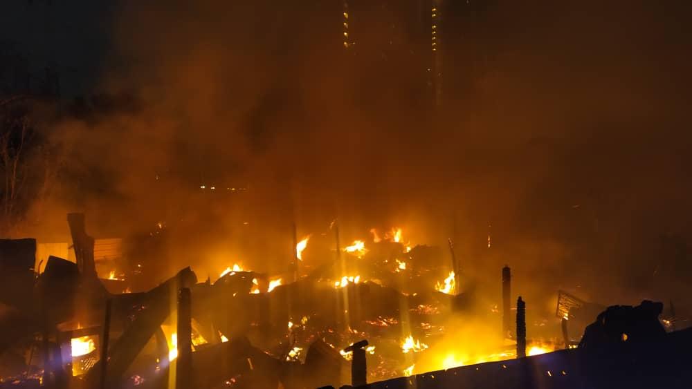 “Hasil siasatan awal mendapati sekurang-kurangnya sembilan buah rumah telah terbakar keseluruhannya dan pasukan penyelamat turut menemui mayat seorang lelaki warga tempatan berusia 47 tahun dalam keadaan rentung sepenuhnya di tempat kejadian.