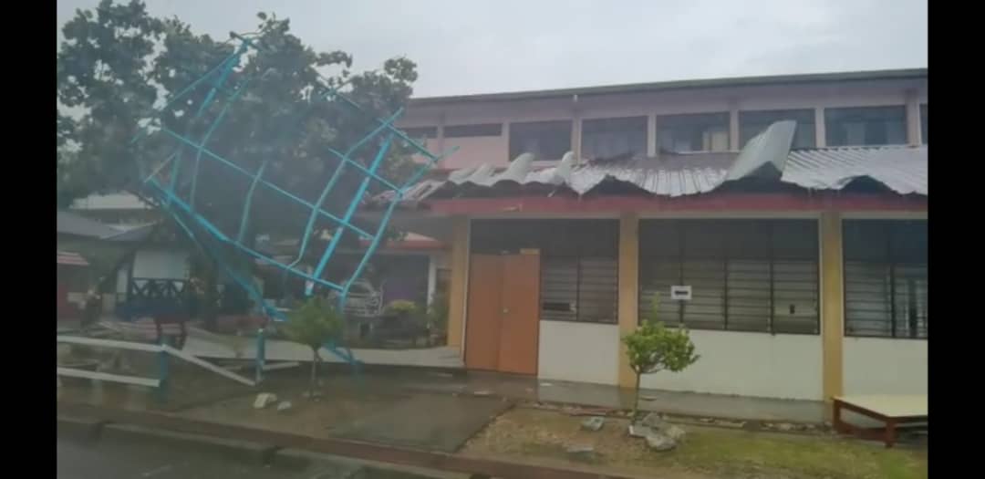 Tangkap layar video yang menunjukkan keadaan SK Taman Seroja, Taman Seroja Sepang yang terjejas akibat ribut petang semalam.