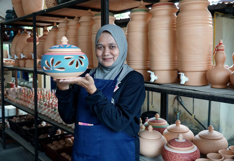 KUALA KANGSAR – Ingin mengubah nasib keluarga dan memberi kehidupan selesa kepada anak-anak mendorong Sazilah Mohd. Yusof, 53, menceburi industri pembuatan kraftangan seni tembikar tradisional dikenali labu sayong.