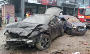 Mayat pertama, Dhenis Maulida Putri Masari, 7, ditemukan penduduk kampung kira-kira pukul 8 malam semalam pada jarak hampir 100 meter dari lokasi dia terjatuh.