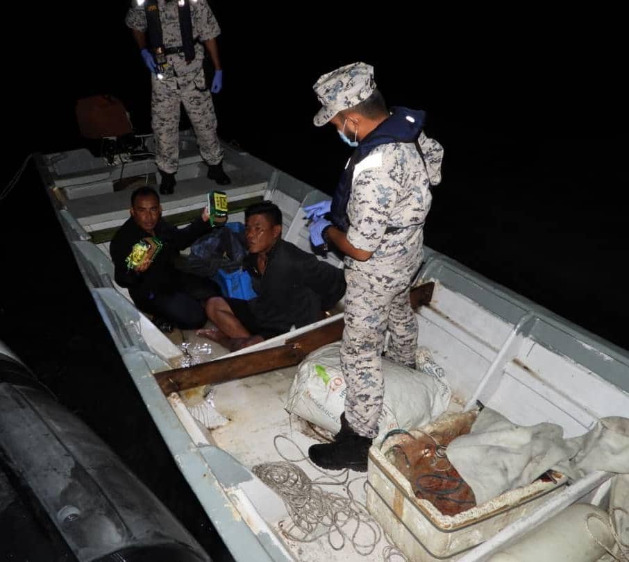 “Bot tanpa nombor pendaftaran menggunakan enjin 60 kuasa kuda itu berjaya ditahan dan pasukan mendapati ia telah dikendalikan oleh dua lelaki warga Indonesia yang tidak memiliki sebarang dokumen pengenalan diri.