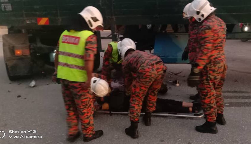 Katanya, sebaik tiba di lokasi, pihaknya mendapati mangsa dalam keadaan tersepit pada sisi treler dan tidak sedarkan diri dipercayai telah meninggal dunia.