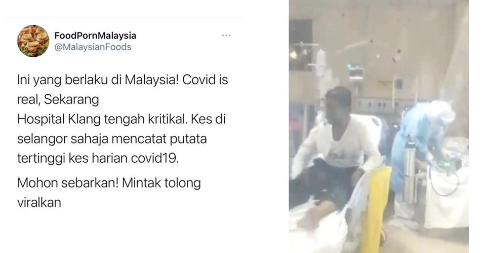 Melalui perkongsian video @MalaysianFood itu, keadaan di hospital terbabit berada dalam keadaan kritikal berikutan peningkatan kes Covid-19 di Selangor.