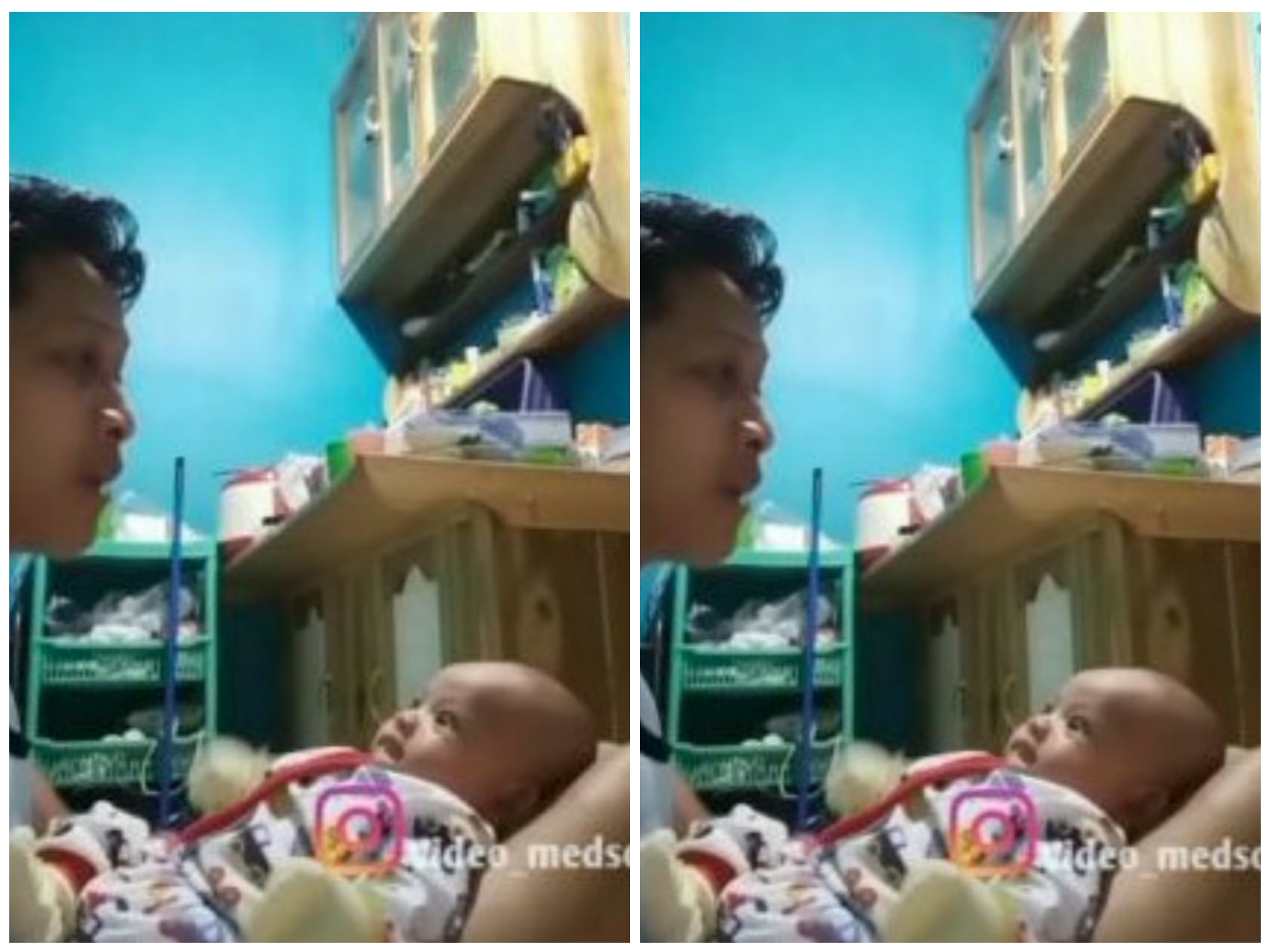Lelaki tersebut sedang cuba menidurkan bayinya yang sering berjaga pada waktu malam. – Instagram @video_medsos