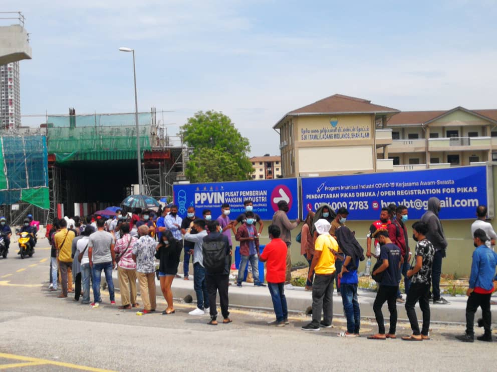 SHAH ALAM – Ratusan pekerja asing membanjiri Pusat Pemberian Vaksin Industri (PPVIN) di Seksyen 7 di sini hari ini.