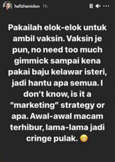 “Saya tak tahu adakah tindakan tersebut merupakan strategi pemasaran atau apa. Awal-awal macam terhibur, lama-lama rasa meluat pula,” katanya dalam satu hantaran InstaStory.