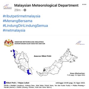 “Di Johor pula, kawasan berdepan ribut petir seperti Kluang, Pontian, Kulai serta Johor Bahru,” katanya hari ini. -K! ONLINE
