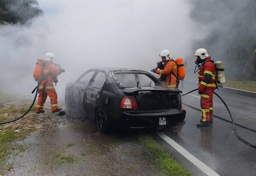 “Kebakaran berlaku dihadapan kereta dan Pasukan Keluar Operasi (PKO) bertindak memadam kebakaran menggunakan dua aliran salur bantu mula bagi memadamkan kebakaran,” katanya dalam kenyataan di sini malam ini.