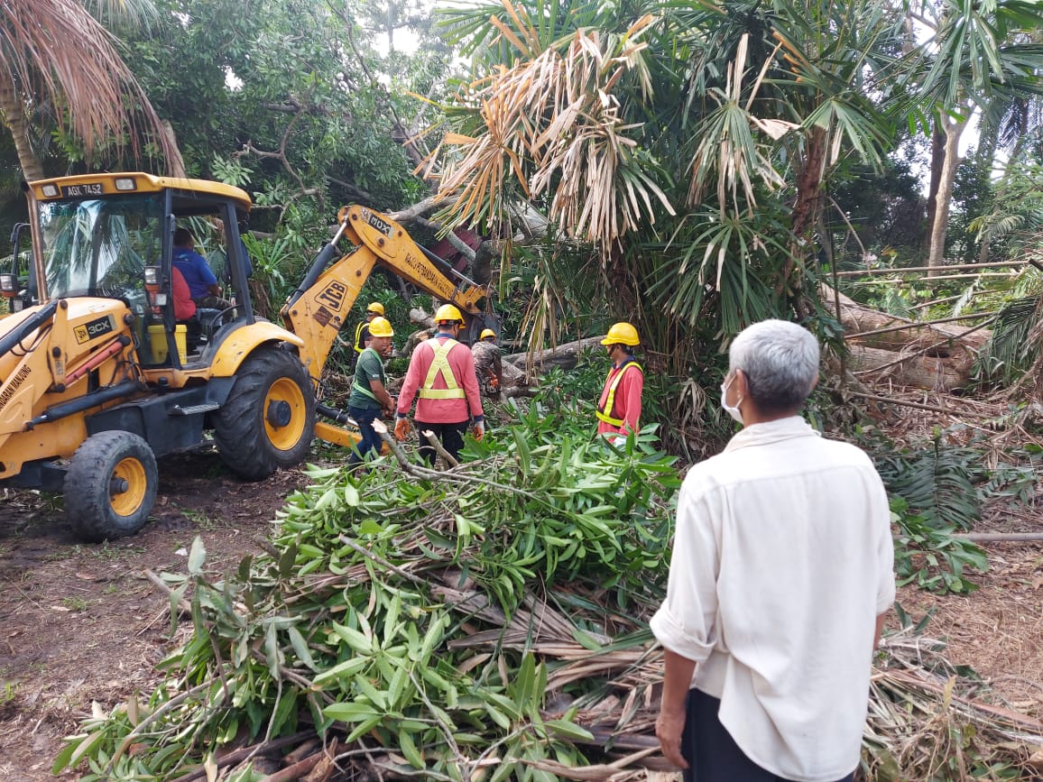 “Kalau bersama dua tiga orang pun memang tak mampu nak bersihkan kawasan ini kerana pokok mempelam yang tumbang itu besar. Kena guna jengkaut.