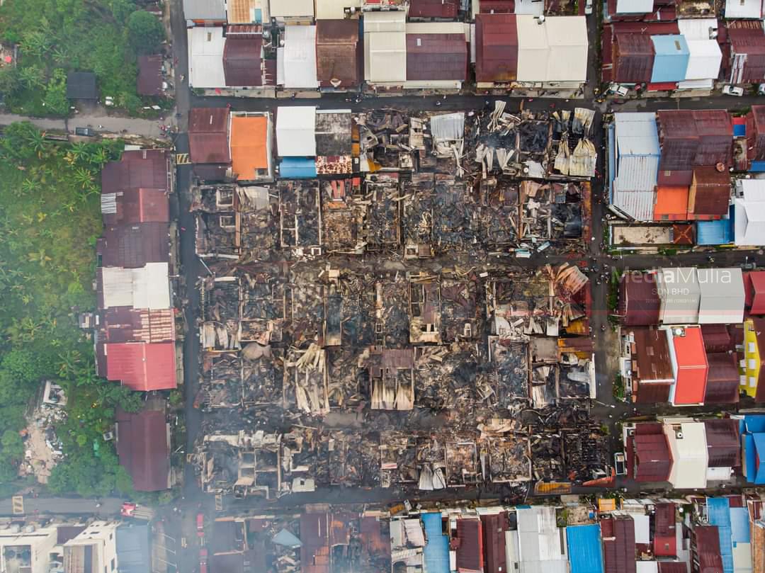 Dalam kejadian kira-kira pukul 9 malam itu sebanyak 51 buah rumah dan lapan buah kedai musnah dalam kejadian kebakaran yang bermula dari sebuah rumah di lorong dua kampung ber­kenaan.