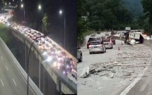 “Polis membuat kawalan lalu lintas di lokasi kejadian. Siasatan awal dipercayai lori membawa muatan pendingin dingin melanggar belakang lori muatan bunga hiasan yang diletakkan di lorong kecemasan selepas mengalami kerosakan.