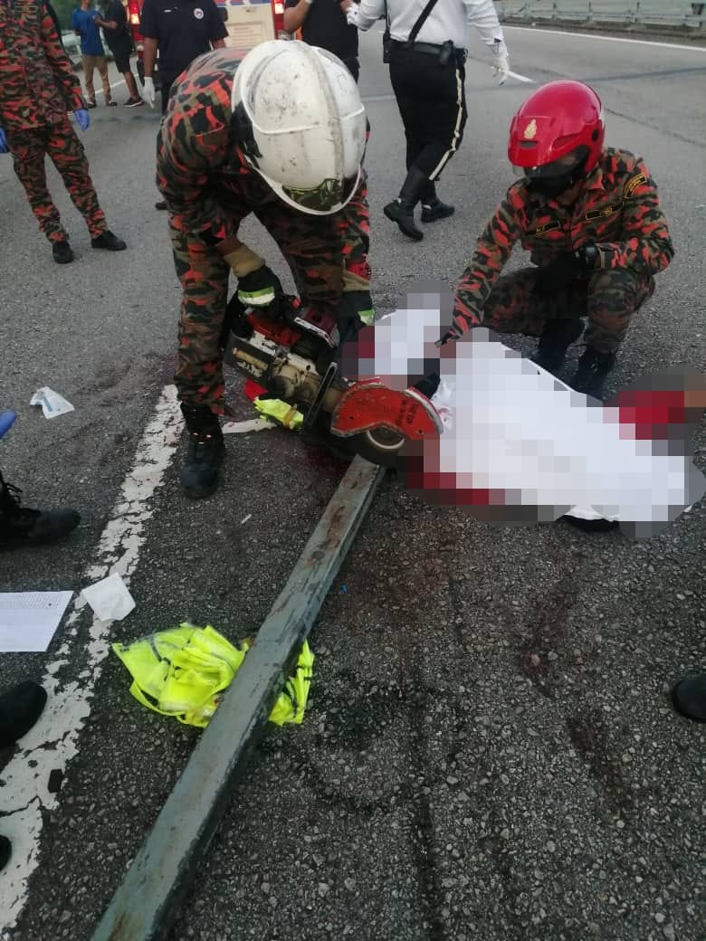 “Dua daripada mangsa tercampak keluar sejauh 4.5 meter dengan seorang daripada tercucuk besi jalan dan meninggal dunia di lokasi kejadian,” katanya dalam kenyataan hari ini.