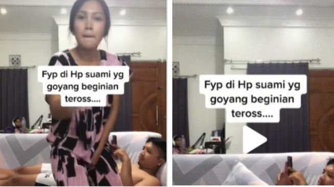 Si isteri yang berang melihat suaminya yang kerap menonton TikTok kemudian melenggok-lenggokkan tubuhnya dengan penuh semangat sambil diperhatikan suaminya.
