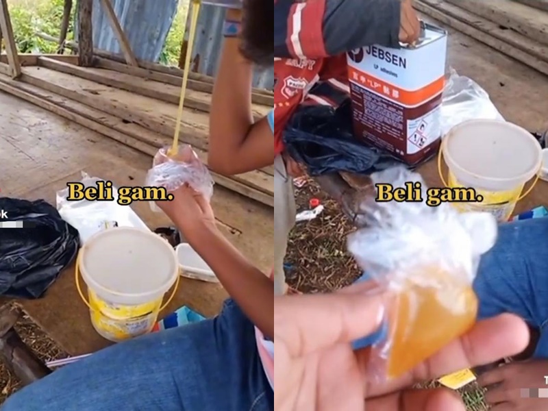 Menerusi perkongsian video oleh @Borneokomrad menerusi TikTok semalam, individu tersebut ada menanyakan beberapa soalan kepada kanak-kanak tersebut sambil dia membungkus gam berkenaan.