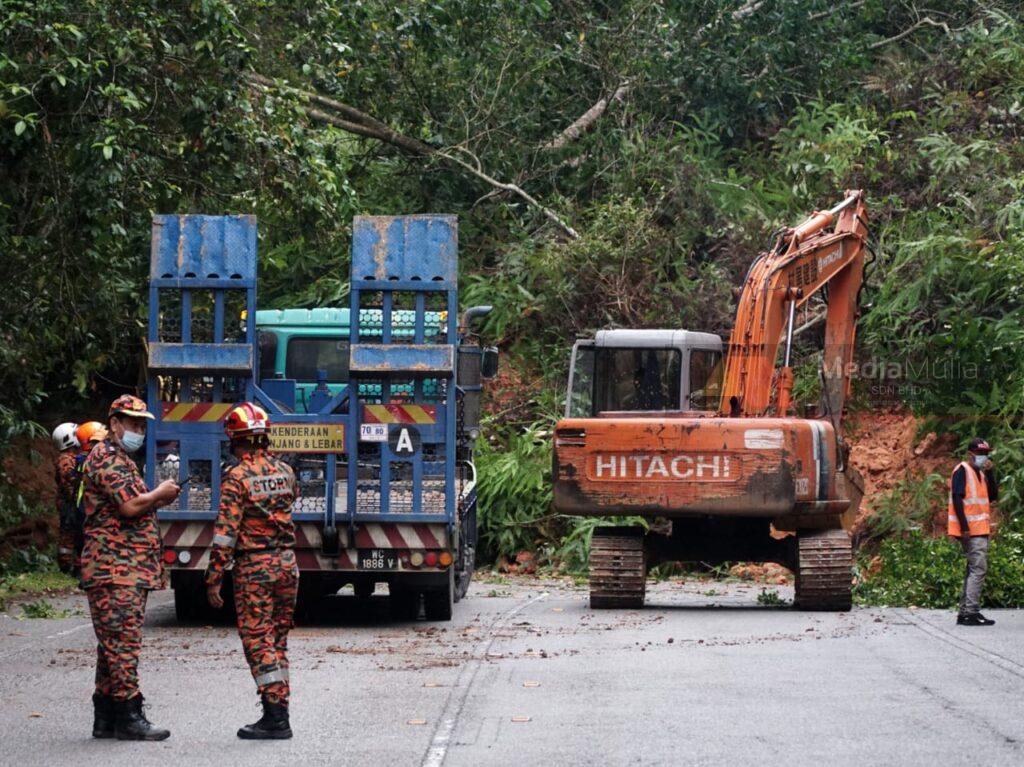“Bantuan sebuah jentolak juga tiba di lokasi kejadian bagi membantu operasi mengalihkan tanah yang menutup jalan,” ujarnya.