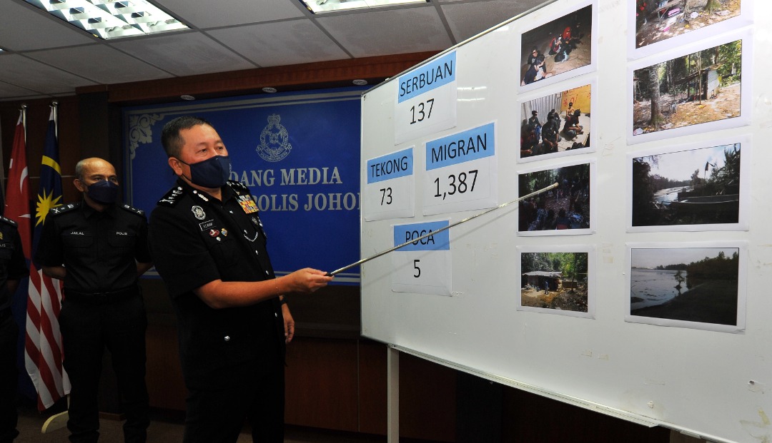 Pemangku Ketua Polis Johor, Datuk Khaw Kok Chin berkata, jumlah itu terdiri seramai 1,387 migran dan 73 tekong termasuk 30 warga tempatan.