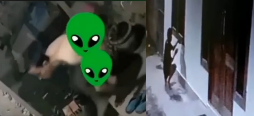 Dalam situasi yang berlainan, pencuri yang sama dilihat sedang mencungkil tingkap sebuah rumah menggunakan pemutar skru.