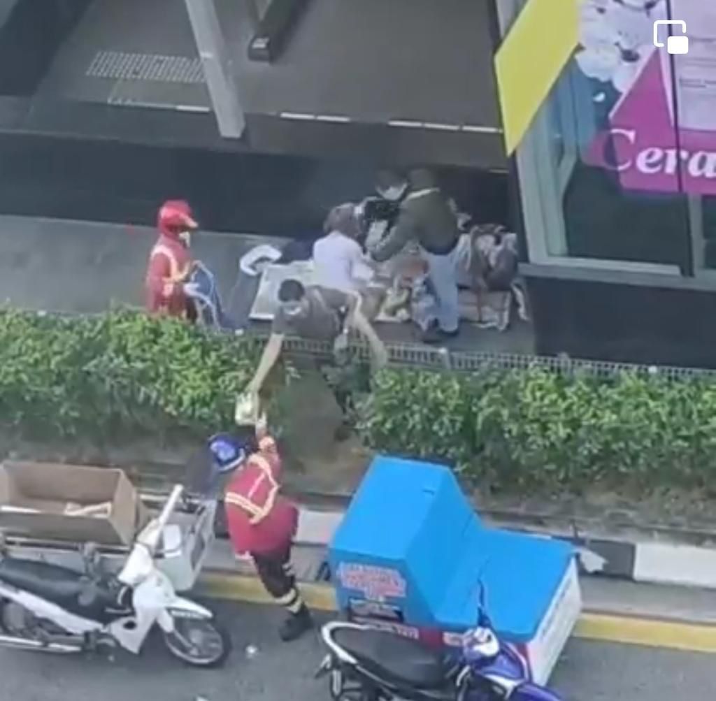 Tindakan lelaki terbabit menerima kecaman orang ramai yang menganggap ia tidak berperikemanusiaan sehingga menyebabkan gelandangan terbabit terduduk menahan kesakitan. – K! ONLINE.
