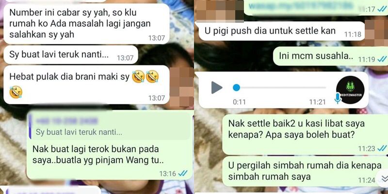 “Aku WhatsApp si Ah Long yang nombornya tertera pada nota tersebut. Korang baca sajalah perbualan itu. Dia siap suruh kita pula pergi mencari pemilik rumah yang berhutang.