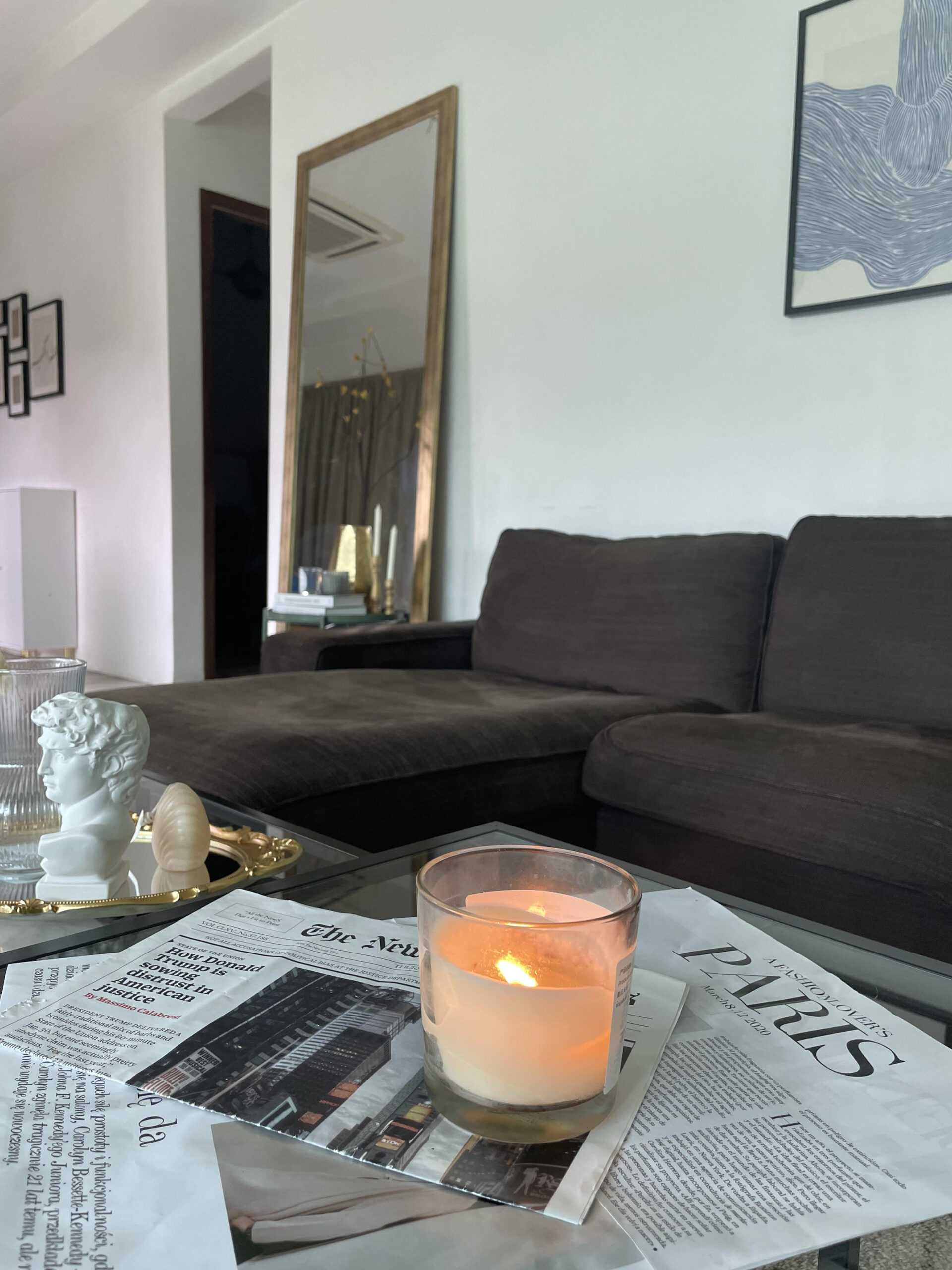 “Selain cermin emas, saya juga meletakkan bingkai gambar dengan imej bergaris yang cukup minimalis dan sesuai dengan imej dekorasi yang diketengahkan,” katanya.