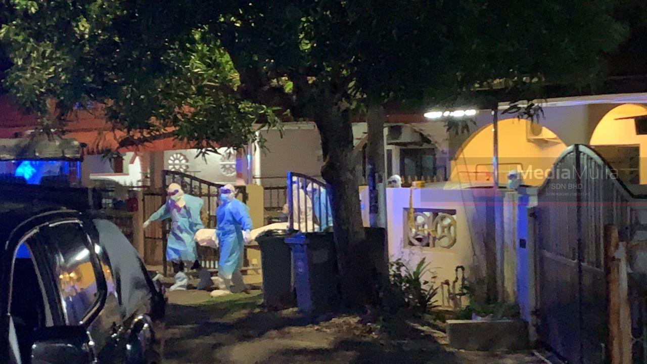 Pihak berkuasa mengusung mayat pasangan itu di sebuah rumah di Taman Merdeka, di sini, petang tadi.