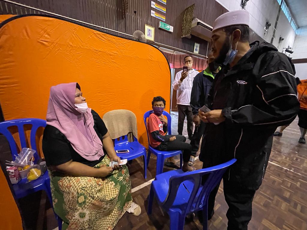 “PPS di Dewan SMK Kamil dibuka pada pukul 9 malam tadi melibatkan 34 dewasa, 24 kanak-kanak, seorang bayi, dua warga emas dan seorang orang kelainan upaya.