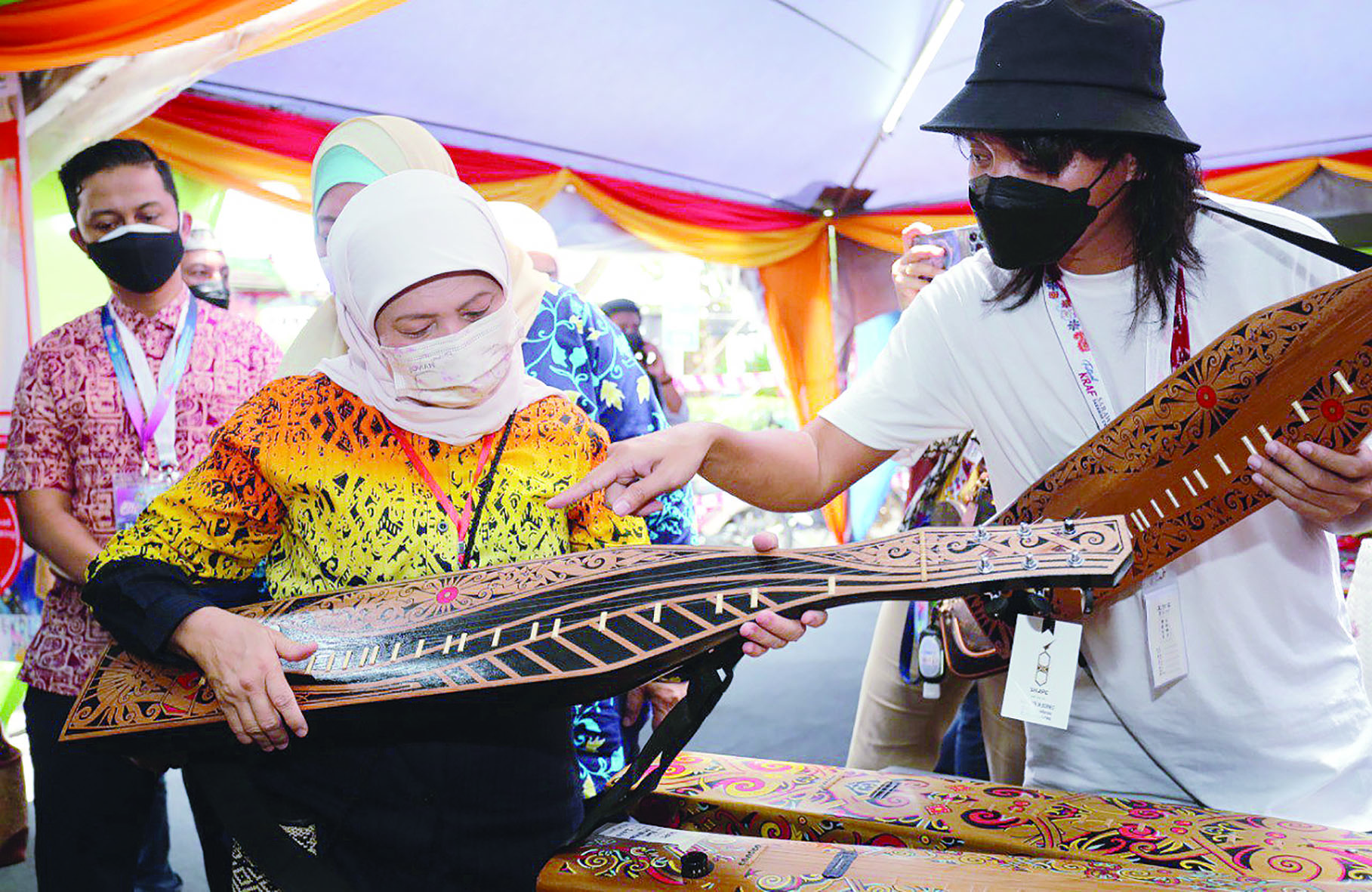 “Sambutan yang diberikan juga amat menggalakkan khususnya terhadap produk baharu yang dihasilkan termasuk alat untuk bermain sape, produk ini begitu laku sekali,” jelas beliau.