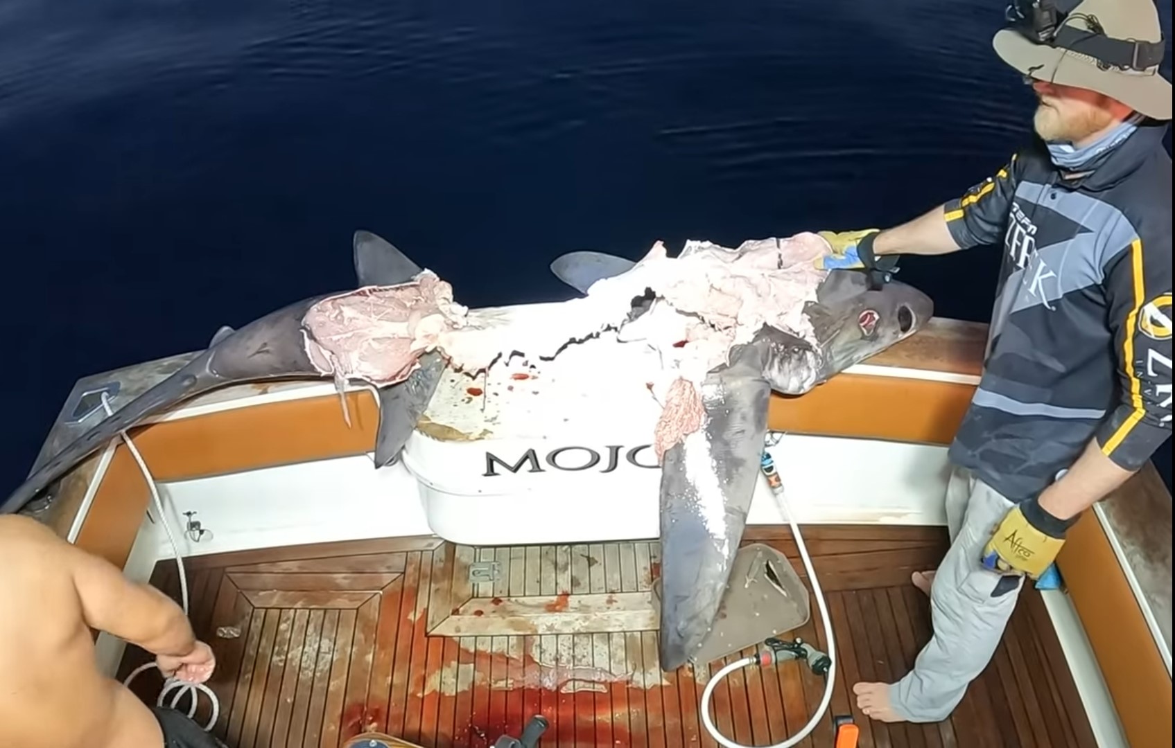 Hitzke dan Whale kemudiannya terkejut selepas menarik jerung itu ke atas bot dan mendapati kebanyakan bahagian badan ikan itu hilang akibat diserang atau dimakan oleh pemangsa lain.