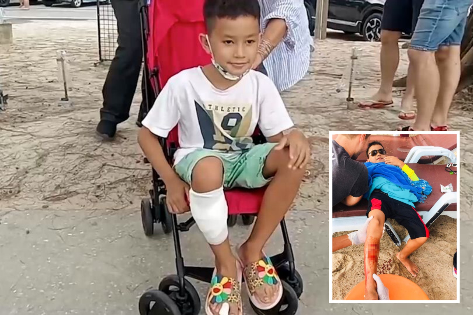 Ibu bapa Napat yang terkejut bertindak mengheret kanak-kanak itu keluar dari laut. Darah memancut keluar daripada betis kanannya.