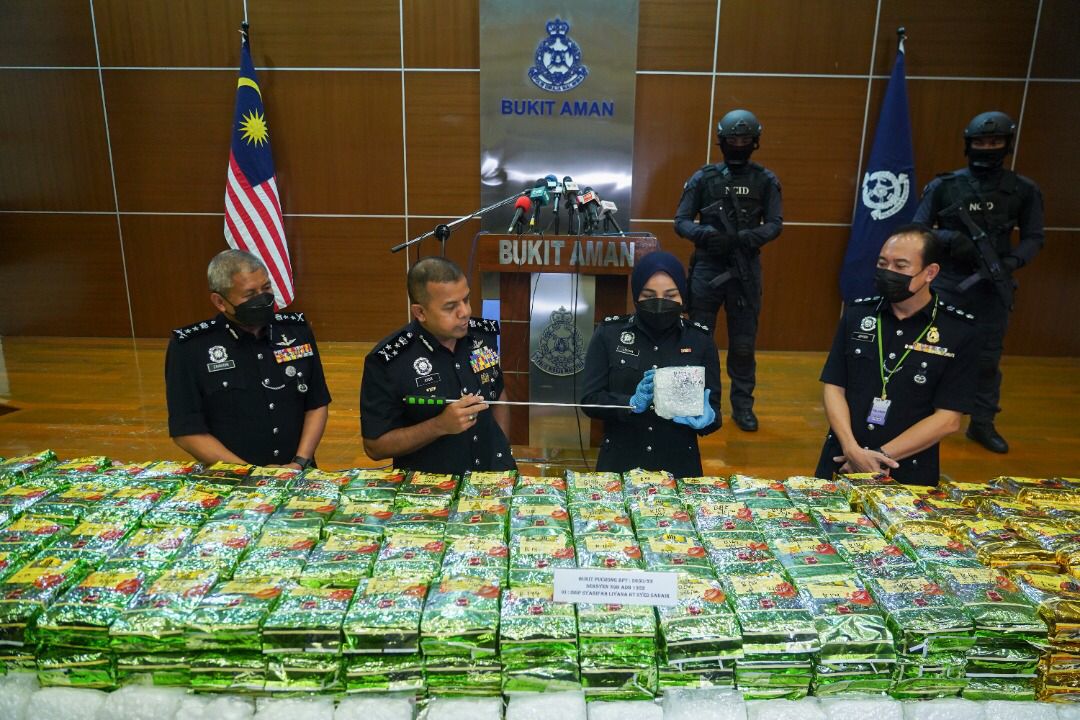 “Hasil serbuan itu polis merampas syabu seberat 404.3 kg, heroin (7.7 kg) dan pil ekstasi (35.3 kg),” katanya pada sidang akhbar di Ibu Pejabat Polis Bukit Aman, di sini hari ini.