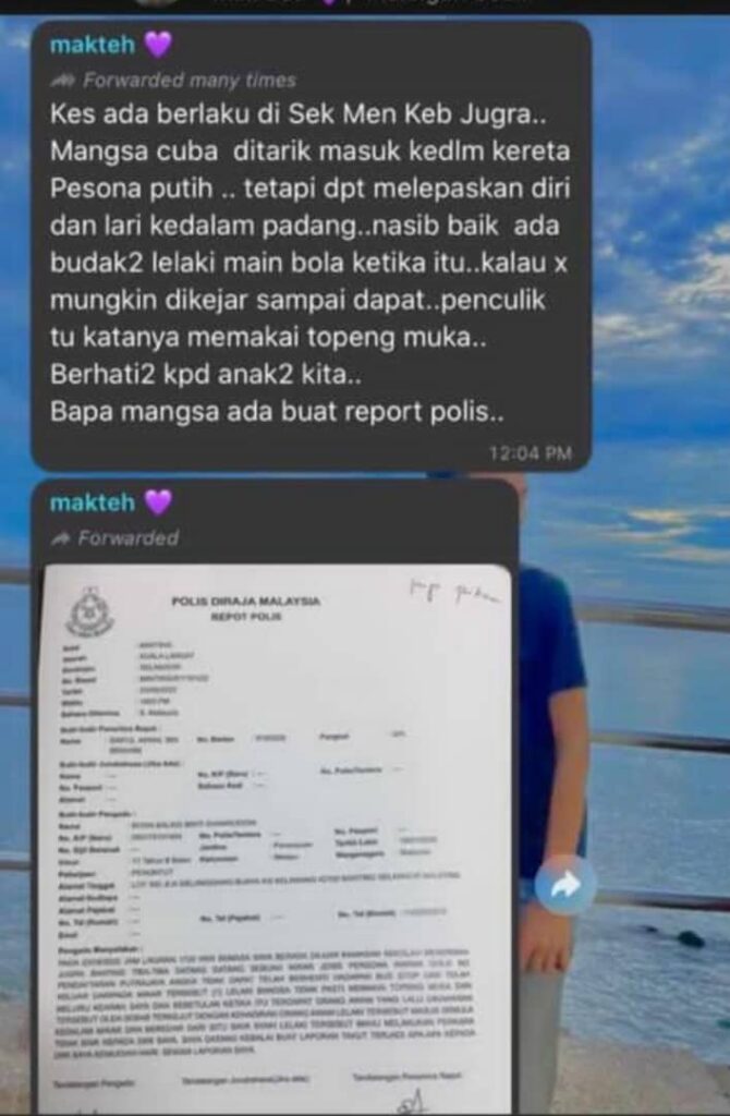 “Namun dari siasatan awal tiada sebarang cubaan culik berlaku seperti yang ditularkan di media sosial,” katanya dalam kenyataan hari ini.