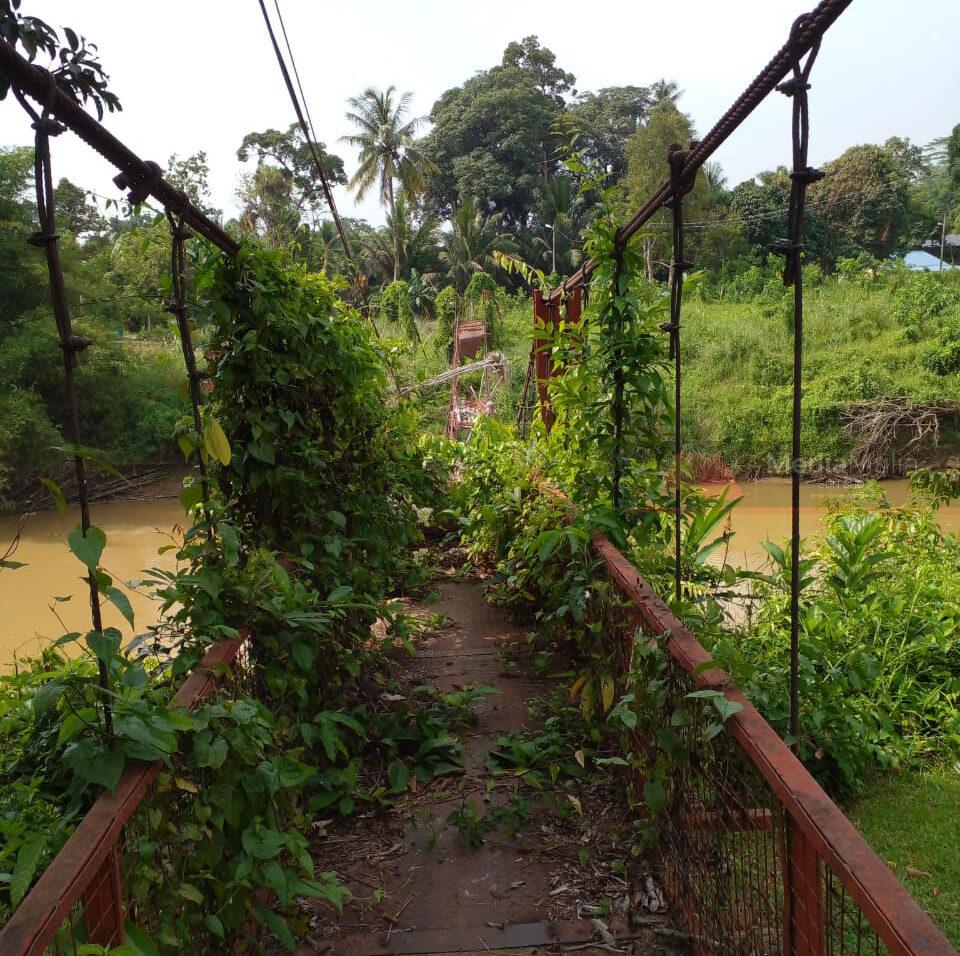 Seorang penduduk, Marto Marijo, 60, berkata, jambatan gantung yang sudah ditumbuhi pokok itu adalah laluan utama penduduk ke Mentakab yang dipisahkan oleh Sungai Semantan.