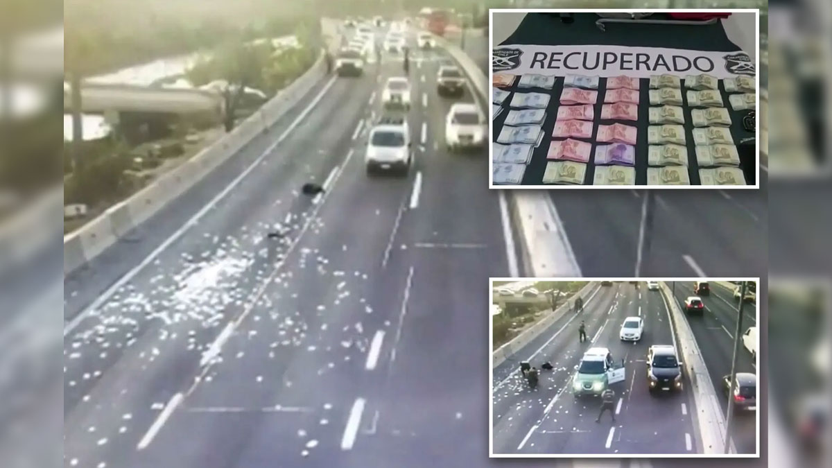 Dalam sebuah video yang dirakam oleh sistem televisyen litar tertutup (CCTV), suspek dilihat melempar sebuah beg dari kereta Chevrolet Sail berwarna biru di sebuah lebuh raya ketika diekori polis susulan rompakan di sebuah premis perjudian di bandar Pudahuel.