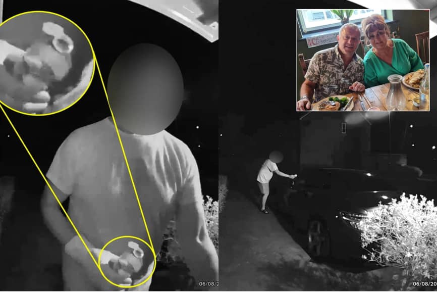 Sue Waters, 59, berkata, dia dan suaminya Martin, 61, sedang bercuti di Cypress sebelum terkejut apabila melihat wajah jiran mereka menerusi kamera di lonceng pintu rumah pada 6 Ogos lalu.