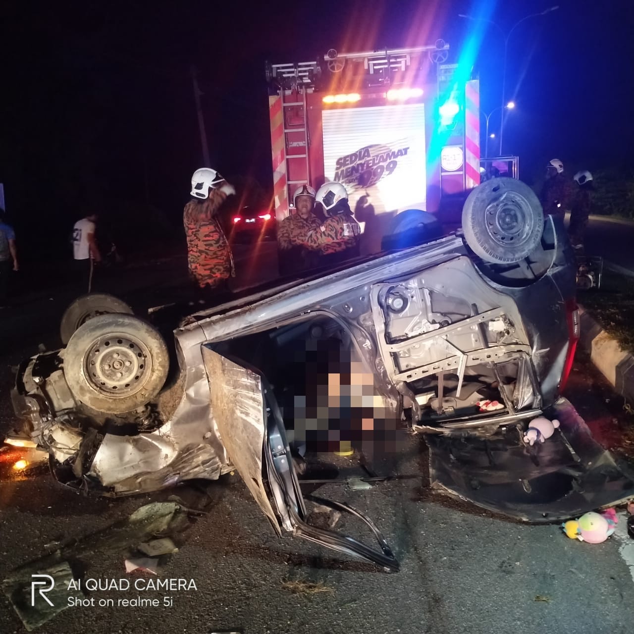 Katanya, setibanya di lokasi kejadian, didapati sebuah kereta dalam keadaan terbalik dengan kedua-dua mangsa masih berada dalam kenderaan berkenaan. – KOSMO! ONLINE