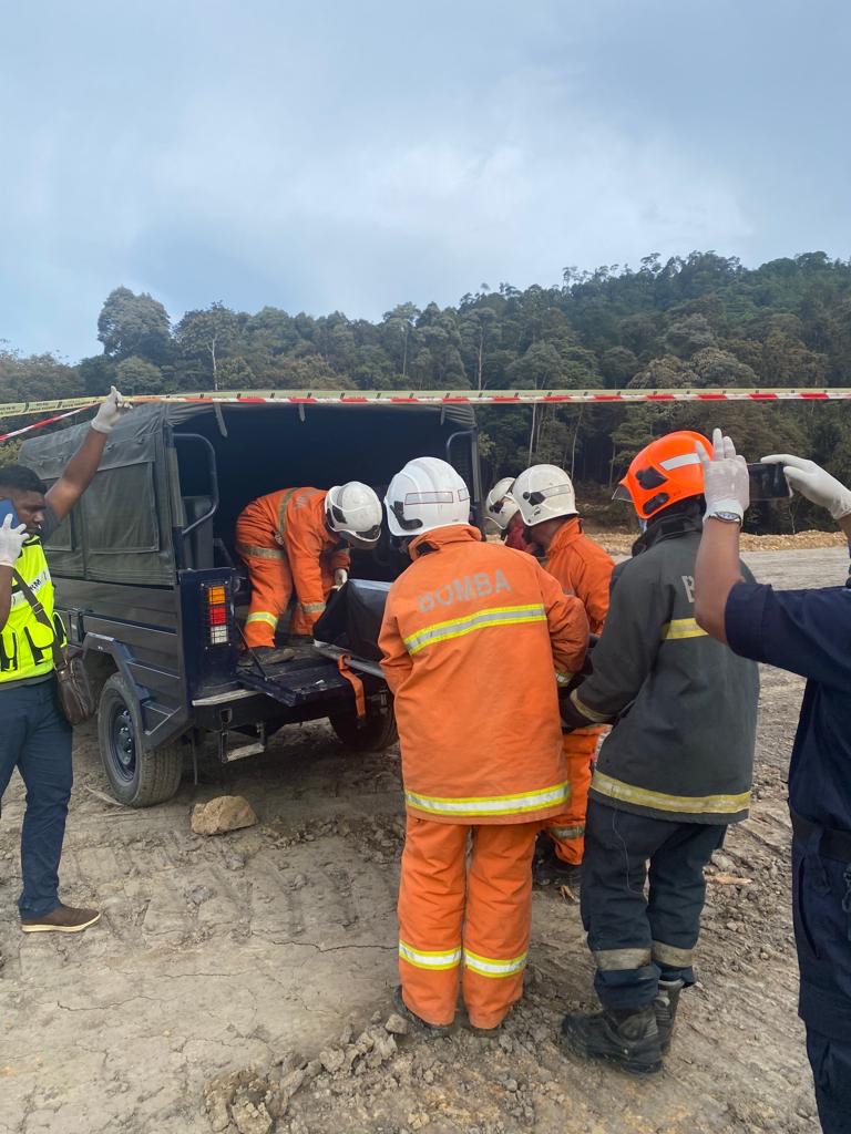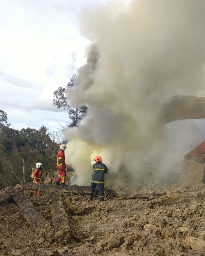 “Dua unit alat pemadam api digunakan untuk pemadaman kebakaran ‘excavator’ kerana tiada sumber air terbuka di lokasi.