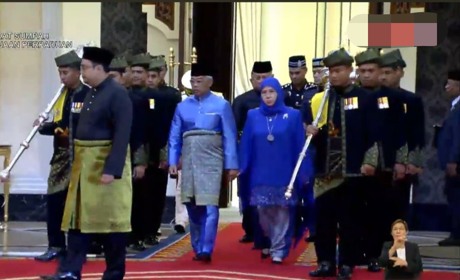 Momen tersebut dirakam ketika Yang Di-Pertuan Agong dan dan Raja Permaisuri Agong berkenan berangkat ke majlis istiadat angkat sumpah jawatan 28 menteri di Istana Negara hari ini.