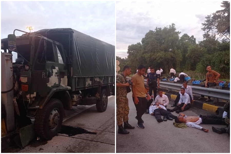 SEREMBAN – Sebuah lori Angkatan Tentera Malaysia (ATM) yang dalam perjalanan membawa 13 Parajurit Muda terbabit dalam kemalangan selepas melanggar tembok batu pemisah lorong tol di Kilometer 7.1 Plaza Tol Lebuh Raya Seremban – Port Dickson di sini semalam.